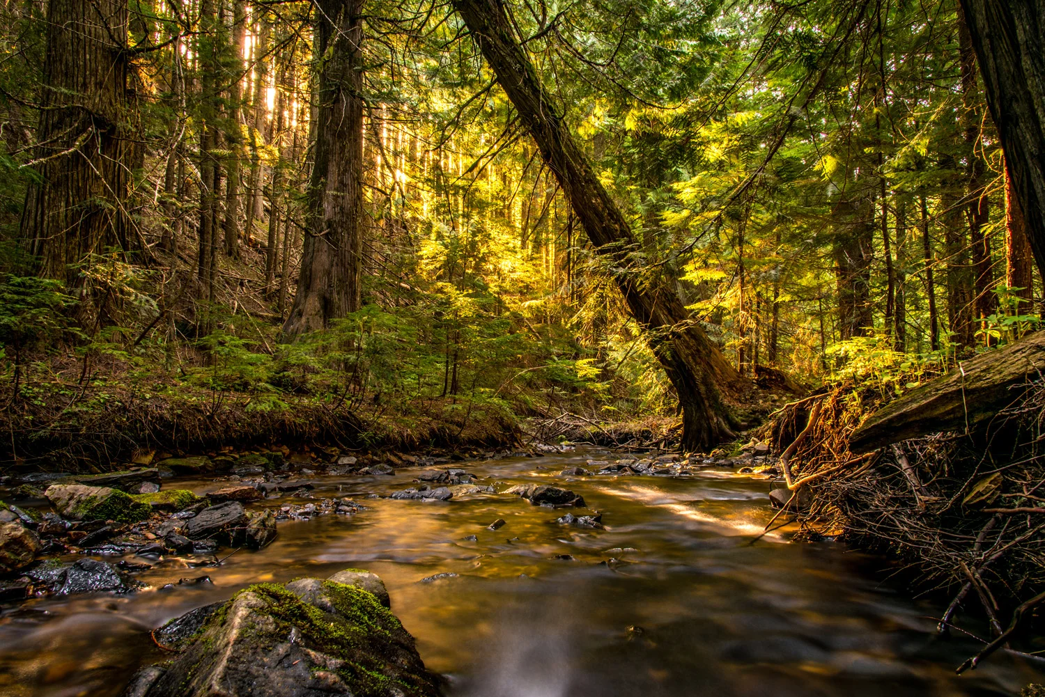 Evening light working through the trees along one of many streams in the St. Joe National Forest of northern Idaho